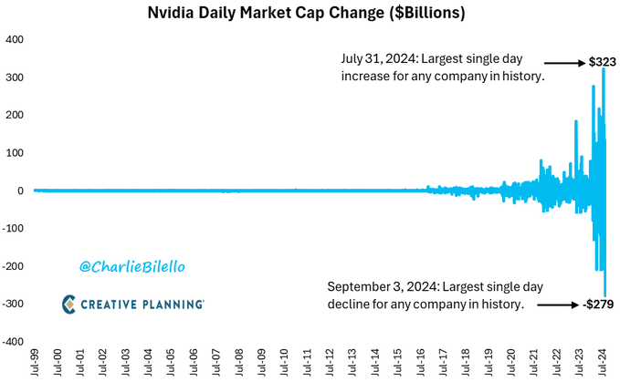行情数据显示,在过去的30个交易日里,英伟达的股价在90.69美元到131.26美元之间大幅波动,其中本周二的市值跌幅(蒸发了2790亿美元)更是达到了美股单一个股前所未见的水平。