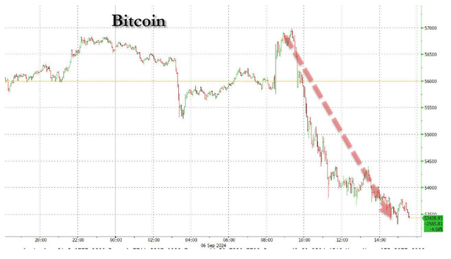 但市场先恐慌上了,除了美债几乎全军覆没:股市大跌、美元跳水、比特币直线下挫、原油大跌,就连避险资产黄金也走低了。