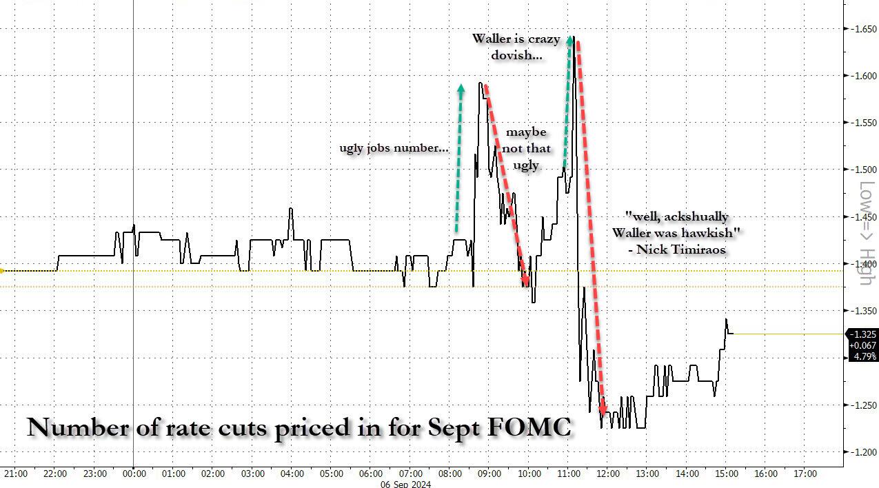 然而,此后有着“新美联储通讯社”之称的著名记者Nick Timiraos的一则推文,再度令市场风向发生了意想不到的变化。Timiraos对沃勒讲话的理解是:沃勒倾向于支持一开始降息25个基点,并明确保留在“新数据”显示经济进一步恶化时“酌情”加快降息速度的选项。据Timiraos推测,沃勒所指的“新数据”并不包括本周的非农数据。